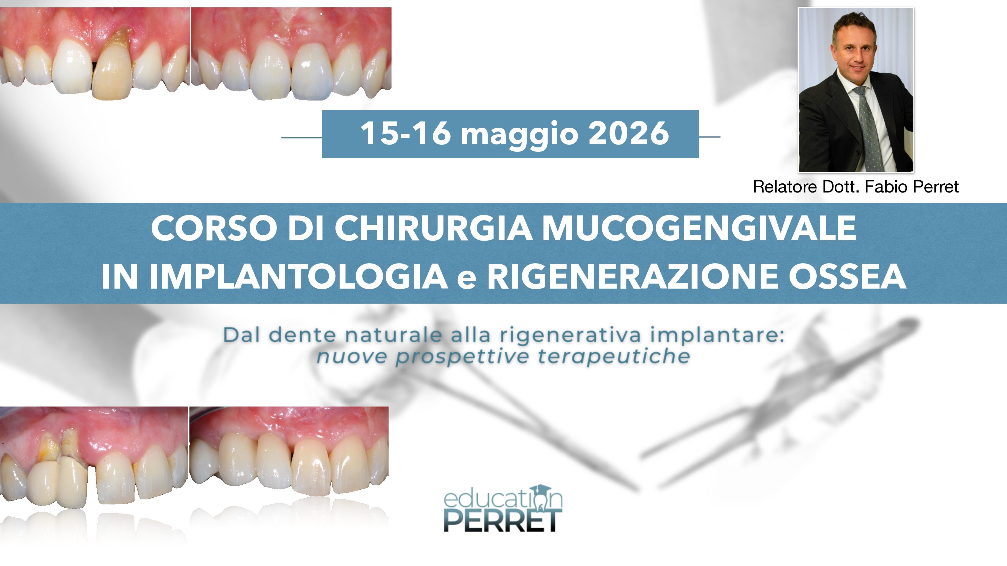“Il corso è consigliato ai colleghi che hanno già frequentato il corso di GBR 3D, e vogliono approfondire le fasi di gestione dei tessuti molli Post-GBR, per aumentare la gengiva cheratinizzata ed ottimizzare l’estetica. Verrà inoltre trattata la chirurgia mucogengivale su denti naturali e su impianti, allo scopo di prevenire e/o trattare eventuali difetti estetici ”
